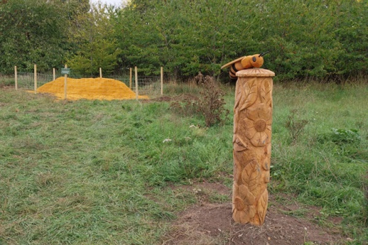 To further promote awareness and appreciation of local wildlife, three beautifully carved wooden sculptures, including a hedgehog, a bee, and a fox, have been installed on site.