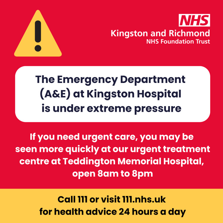 The Kingston and Richmond NHS Foundation Trust has today (Tuesday, 13 January) asked patients seeking emergency care in Kingston to avoid using Kingston Hospital's A&E Department and to instead head to the Urgent Treatment Centre (UTC) at Teddington Memorial Hospital.