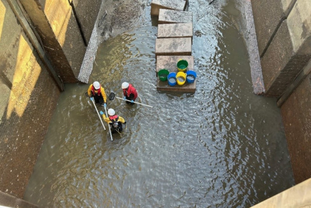 As part of the dewatering activity, the EA worked with ecologists FiveRivers, which carried out electro-fishing to safely remove any fish from the works area.